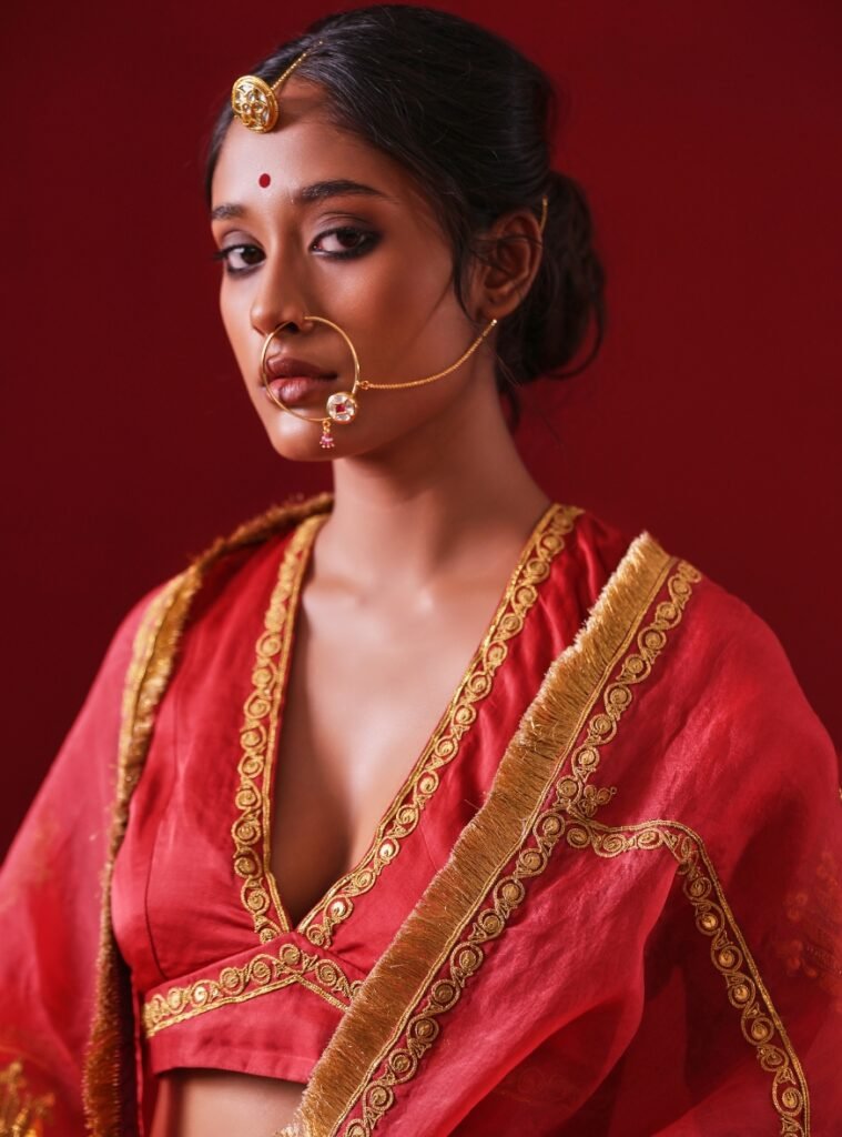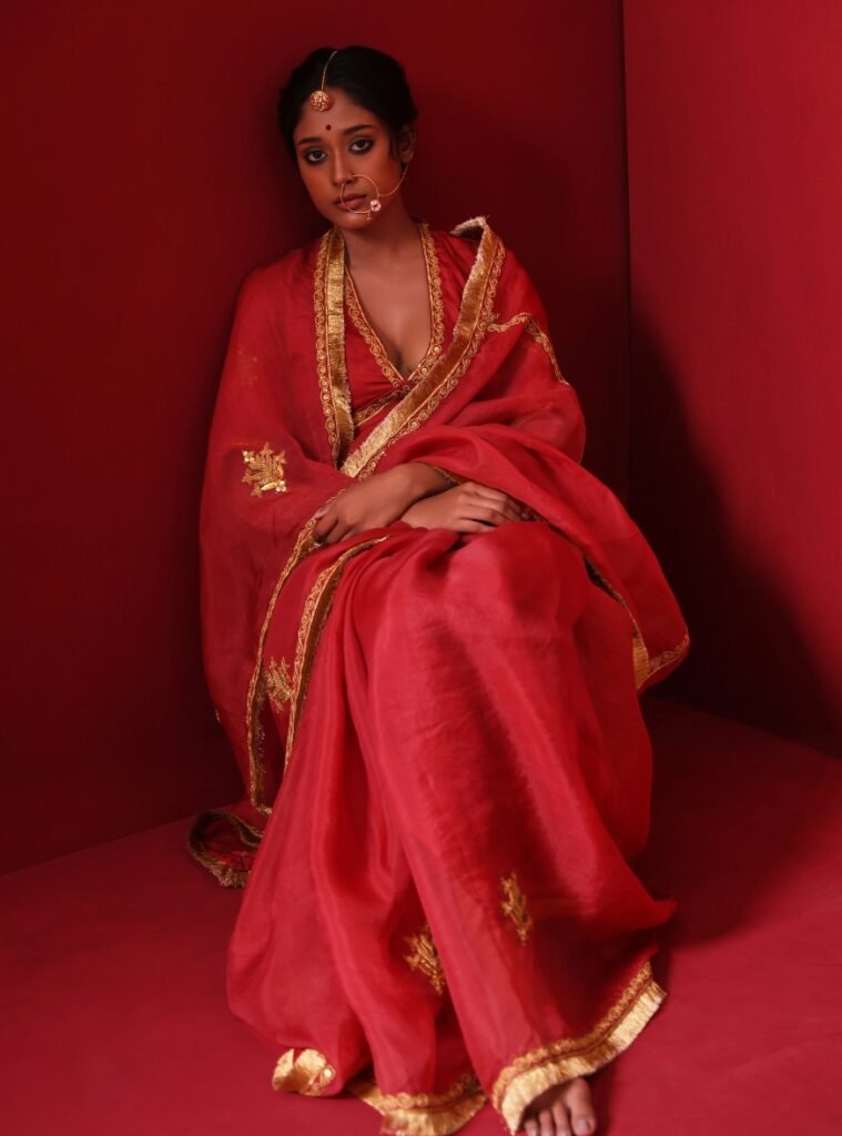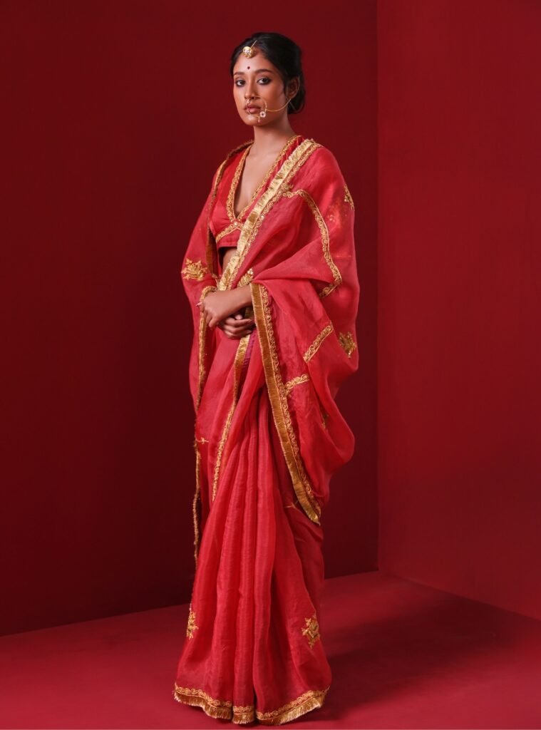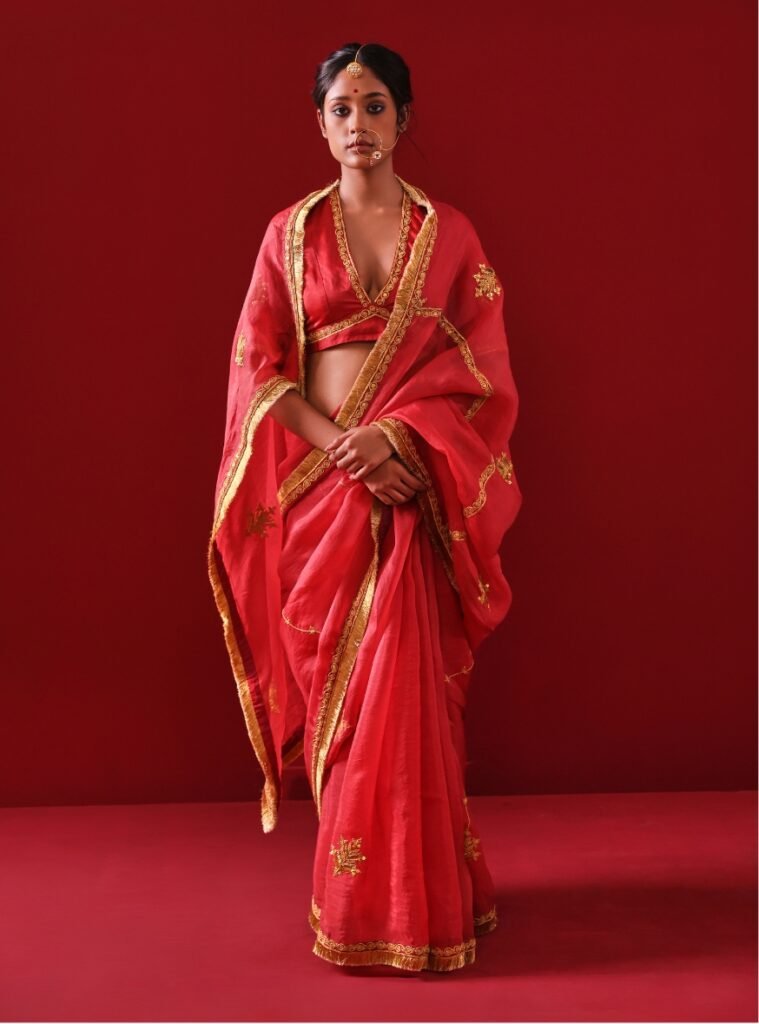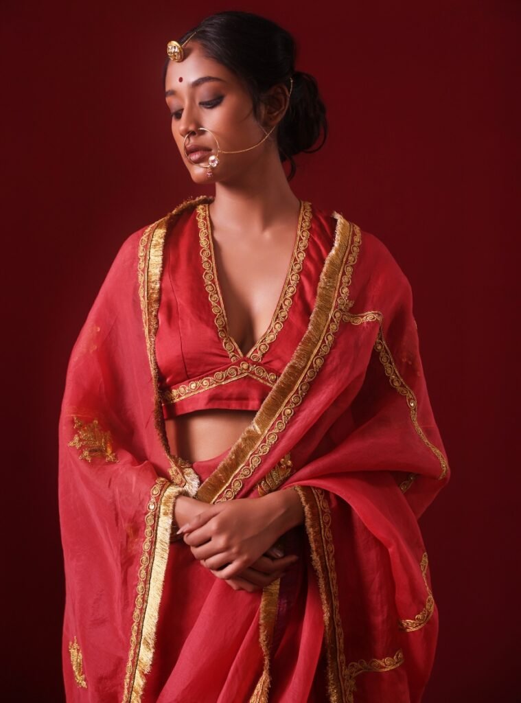Paired with a finely crafted Silk Blouse, it strikes the perfect balance between traditional artistry and contemporary allure.